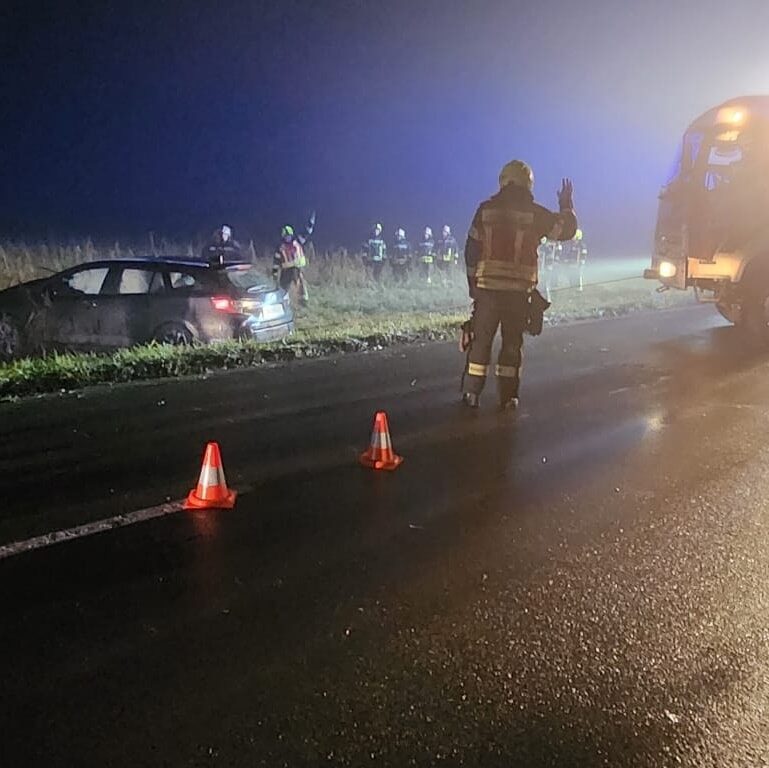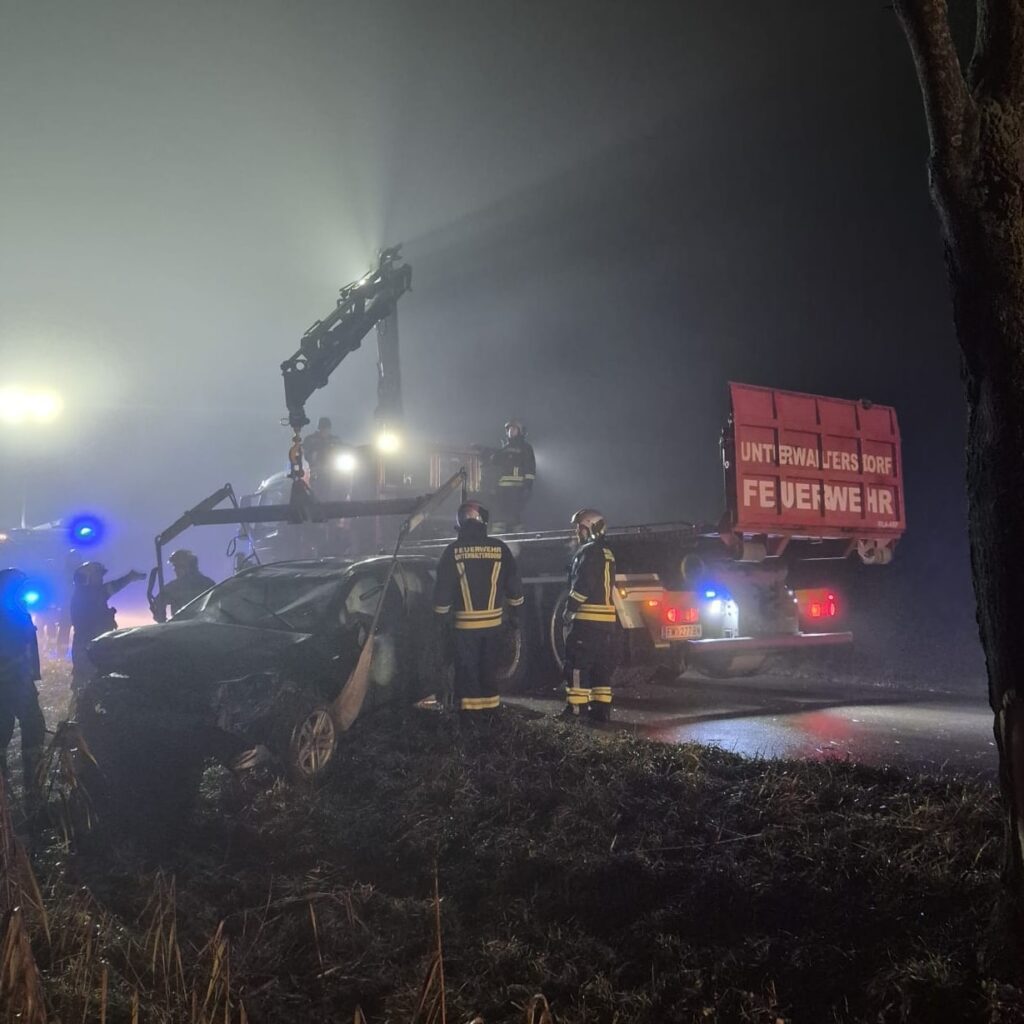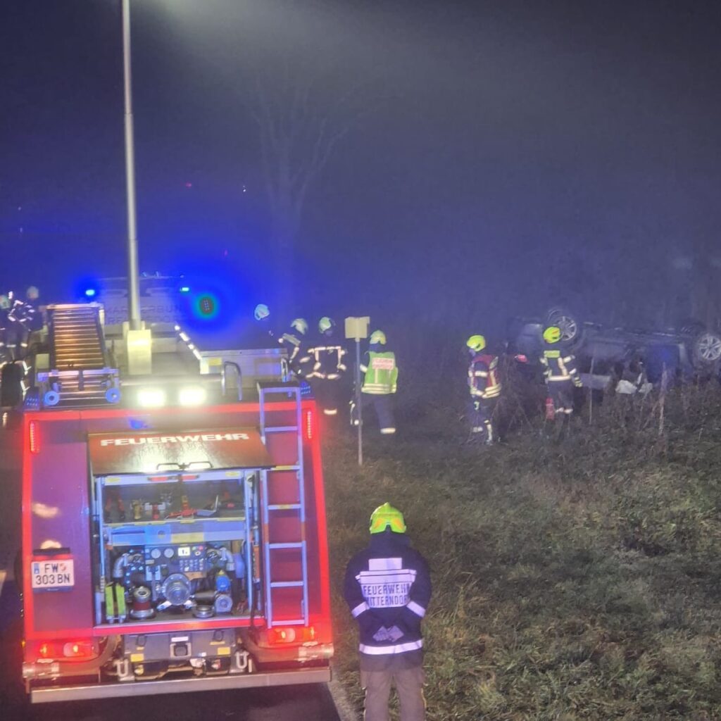 Nach der ersten Lageerkundung konnte Entwarnung gegeben werden. Der Fahrer konnte sich selbst aus dem Fahrzeug befreien und hatte alle Schutzengel mit sich – er blieb unverletzt.