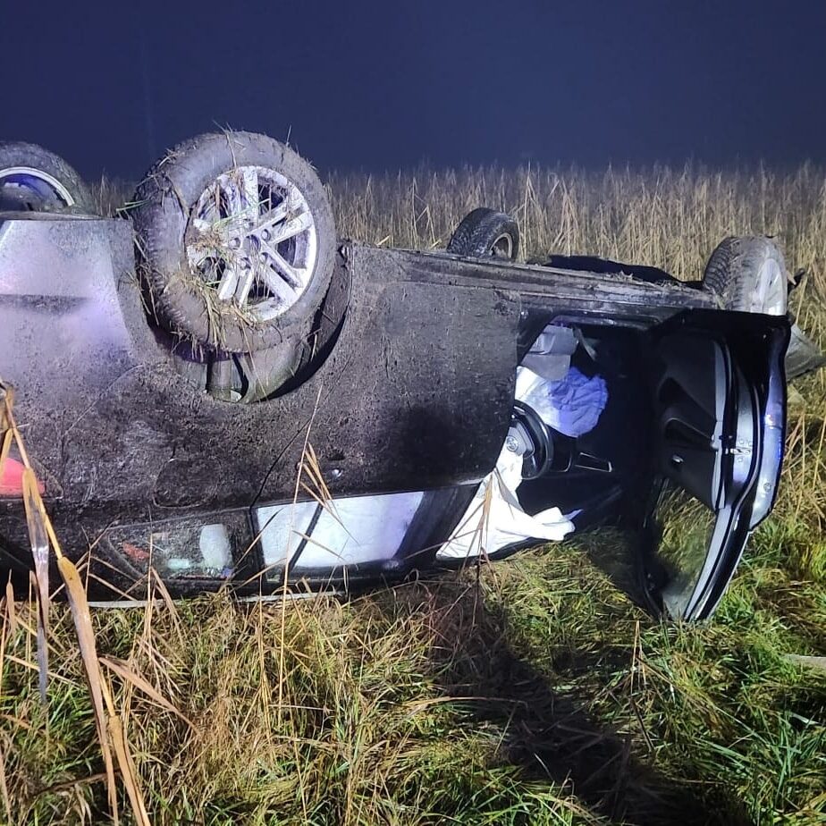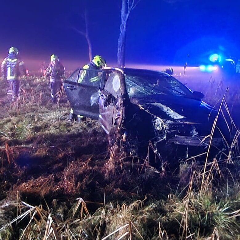 Ein PKW prallte gegen einen Baum, überschlug sich und blieb am Dach liegen.