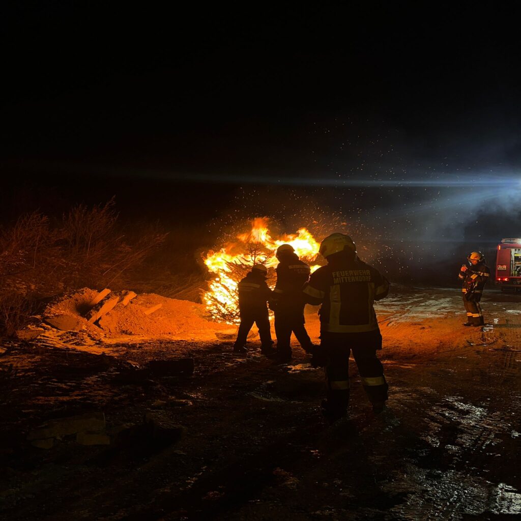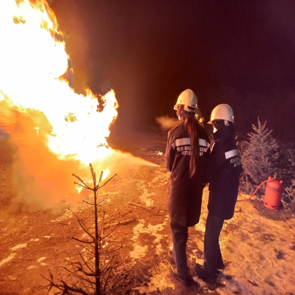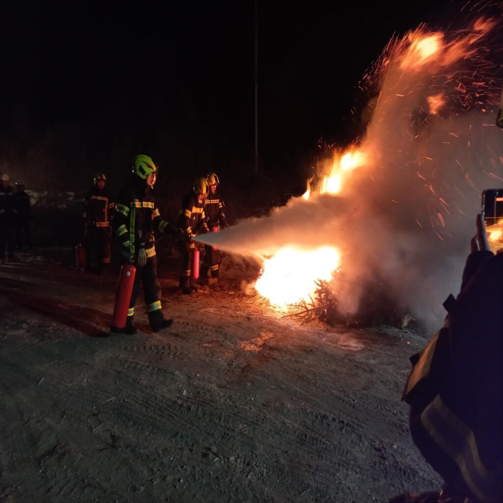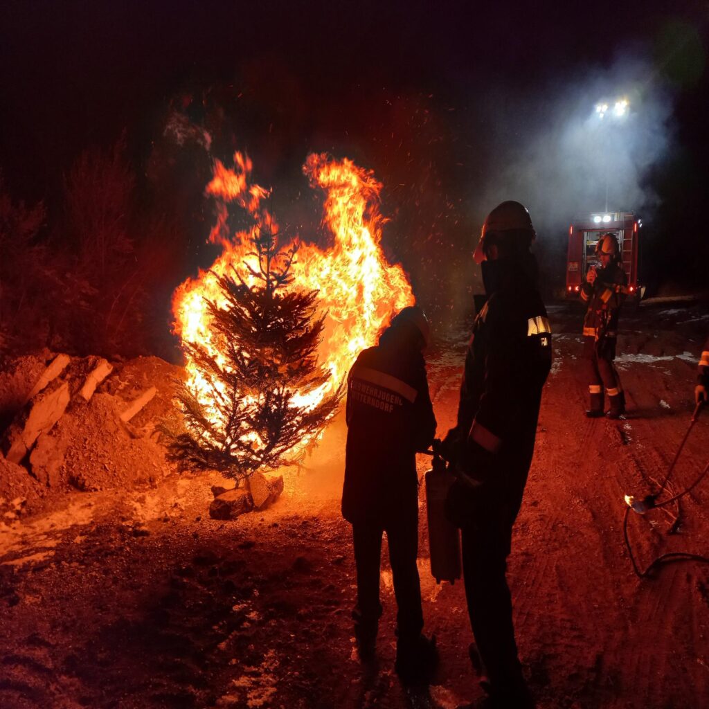 Auch heuer nutzten die Jugendlichen die Gelegenheit um mit den ausgedienten Christbäumen die verschiedenen Löschmittel als auch die Bedienung eines Handfeuerlöschers zu beüben.