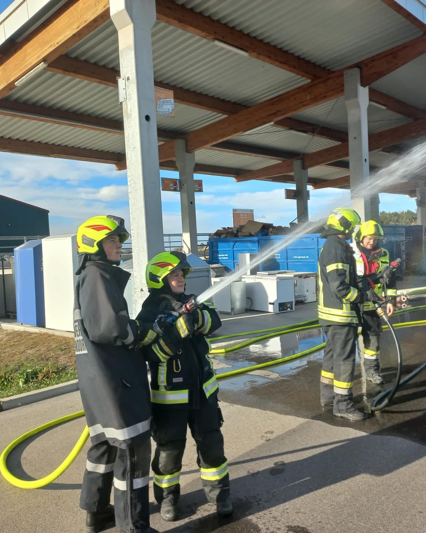 Übungsannahme war ein Brand einer Müllinsel (B2) und 6 verletzte Personen im ASZ Seibersdorf.