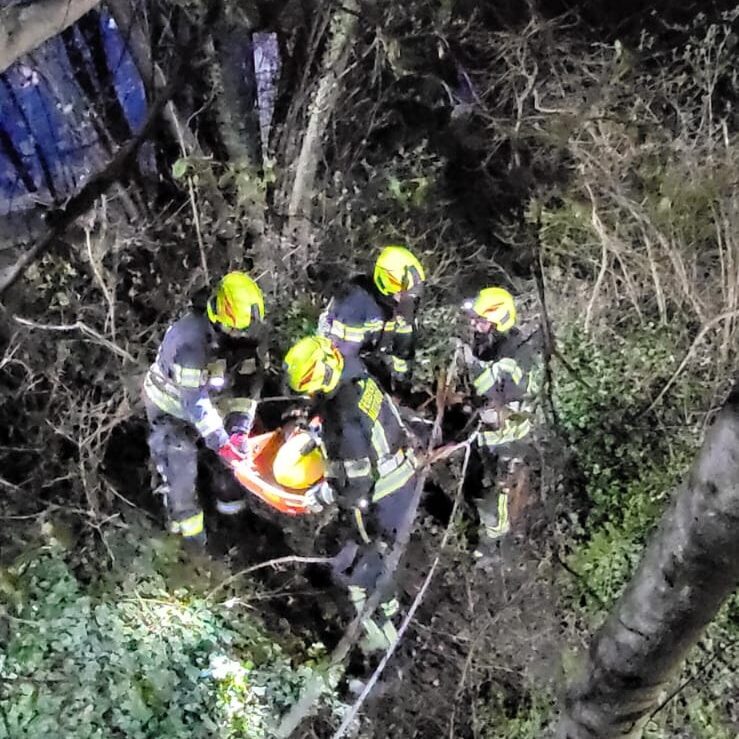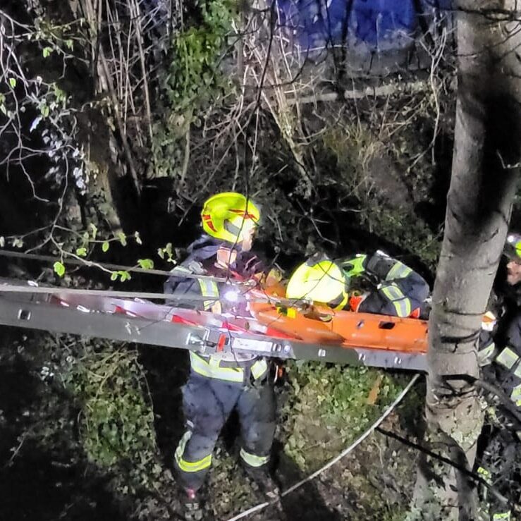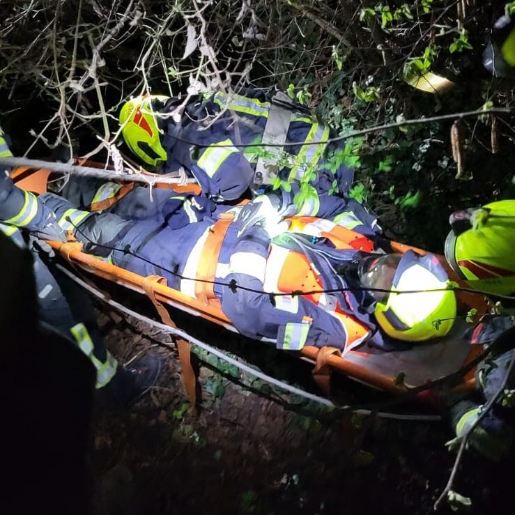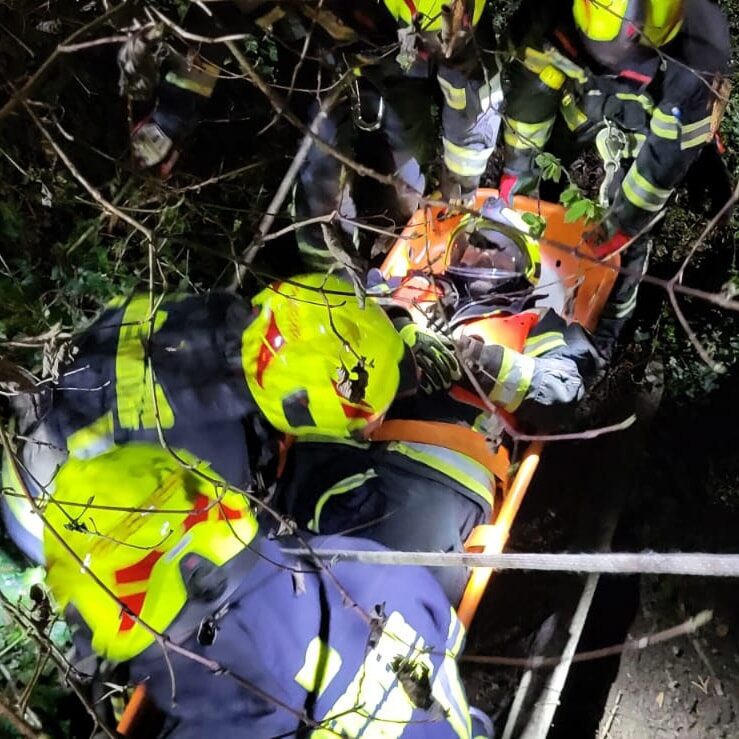 Das Einsatzteam der Wehr konnte die Person mittels Hebekissen befreien und dann mit der Korbschleiftrage retten. ![]()