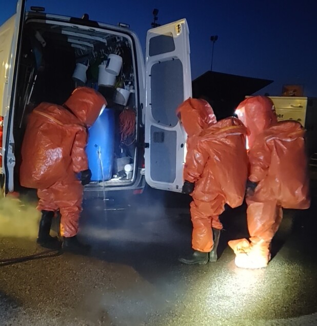 +Einsatzübung+ Zum Abschluss des Themenschwerpunkts „Schadstoffeinsatz“ gab es am Bauhof in Mitterndorf eine herausfordernde Übung unter einsatznahen Bedingungen. Szenario: Unfall…