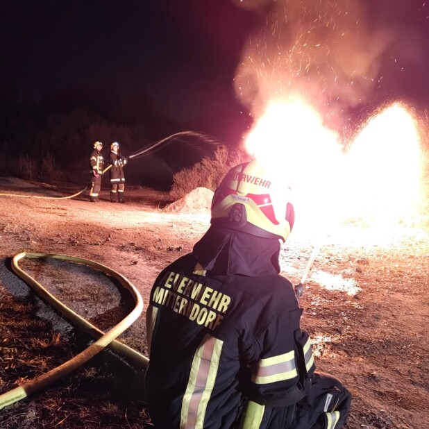 Einsatzübung der FF- Mitterndorf Ziel war das Üben eines Löschangriffs inklusive legen einer Zubringleitung, die diesen mit Wasser versorgt.