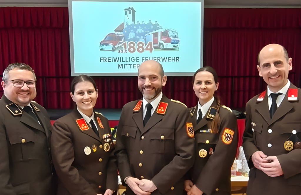 Kommandant: HBI Paul Payrich (2.v.l.)Kommandantstellvertreter: OBI Nadine Tomsich (2.v.r)Leiter des Verwaltungsdienstes: OV Alics Binder (1.v.l.)Stellv. Leiter des Verwaltungsdienstes: V Georg Lettner (1.v.r) Kdt: HBI Paul PayrichTelefon: +43 650 6240339 NOTRUF: 122 Jeden Mittwoch von 19:00-21:00 Uhr oder schreiben Sie uns mitterndorf@feuerwehr.gv.at Zur Wehr 8, 2441 Mitterndorf an der Fischa Facebook Tiktok Instagram